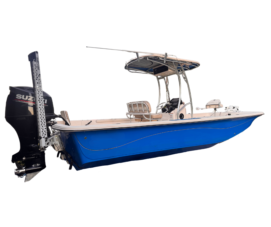 Dual stainless props & jack plate for speed and shallow draft flexibility